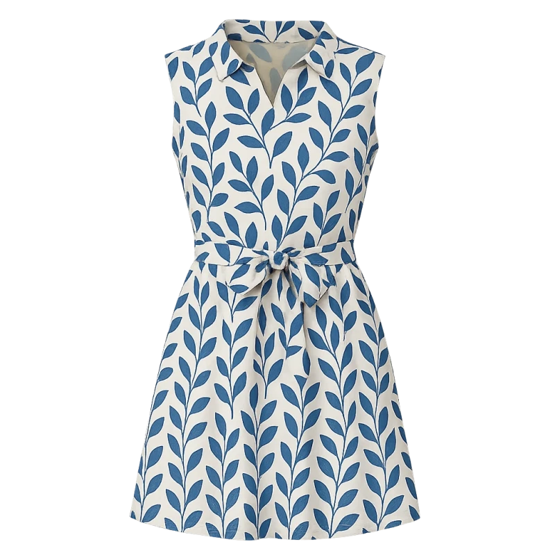 Designed for those seeking a light and airy summer look, our blue leaf-patterned dress offers all-day comfort with its natural cotton texture. Its V-neck and short sleeves allow for freedom of movement, while its A-line design flatters every body type. Achieve a simple yet striking look with the vibrant blue leaf patterns, transitioning from day to evening in style. A concealed back zipper makes it easy to put on and take off, and its single-layer cotton construction offers a lightweight feel. This dress, a summer staple, is poised to become a wardrobe favorite.