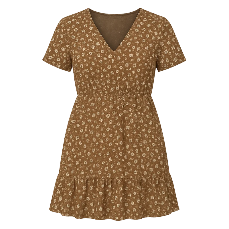 Lunarella's Brown Elegance Dress , a piece that emphasizes simple elegance, complements any style with its natural tones. Its soft viscose texture ensures all-day comfort, while its V-neck and A-line design create a feminine silhouette. Choose it for a touch of elegance in everyday outfits or for a touch of minimal grace for special occasions. Its timeless brown hue will make it a staple in your wardrobe year-round.