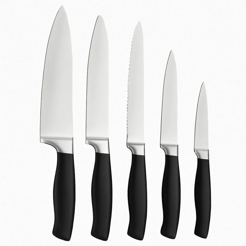 The CHEF EDGE – BC-502 is a special 5-piece knife set designed for those who want to equip their kitchen like a professional chef. Its black handle design complements modern kitchens and ensures comfort during long-term use.