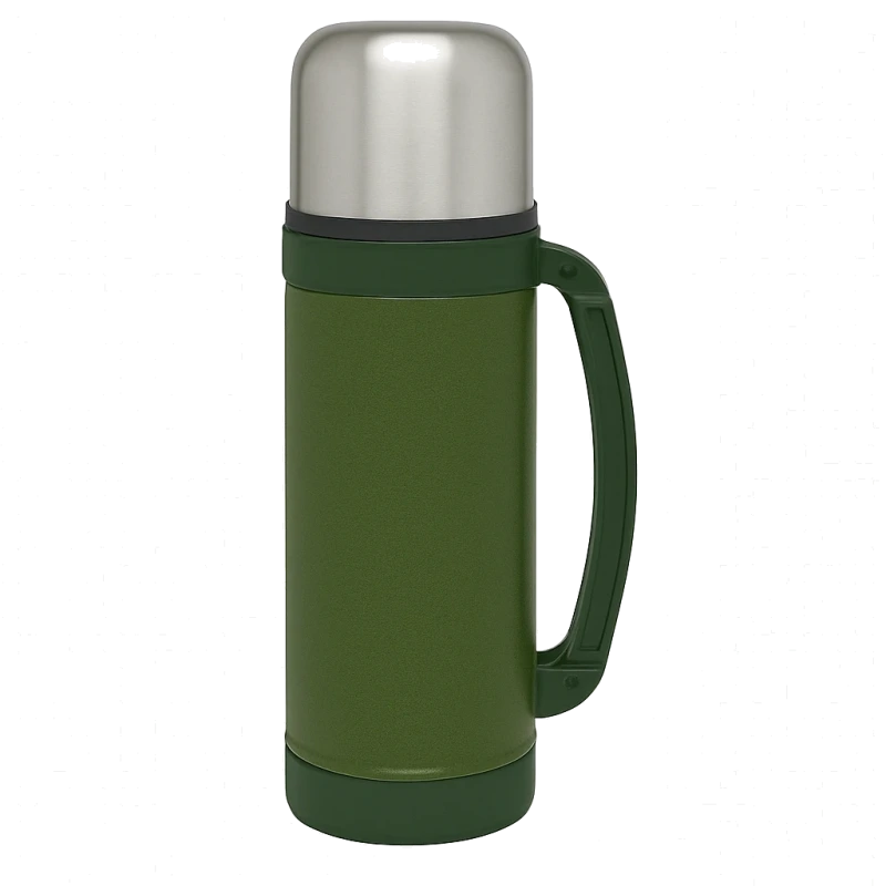 Made of durable stainless steel, this green thermos is the most stylish and practical way to carry your hot and cold beverages, whether outdoors or in the city. Its double-layered vacuum structure keeps your beverages at the ideal temperature for hours. The lid doubles as a cup, and its ergonomic handle makes it easy to carry. From campers to office workers, this thermos will be an indispensable companion, offering both functionality and aesthetics.