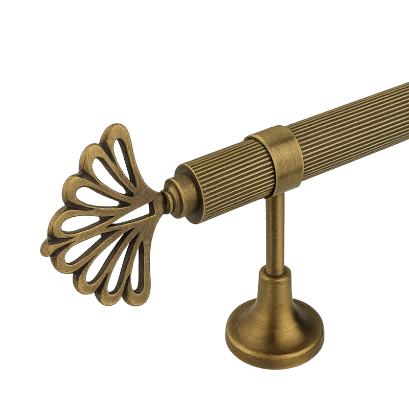 ROYAL BRASS – RA-106 brings the brass texture, essential to classic and luxurious decor, to living spaces. Its high-gloss, gold-toned surface creates a striking effect, especially when combined with dark walls or velvet curtains. Its body and end details are entirely metal, and its brass-plated surface is resistant to oxidation. This model, which stands out with its durability as well as its elegance, makes an elegant addition to prestigious spaces like living rooms, hotel rooms, and formal meeting rooms. The product, which comes with a screw-mounted mounting kit, ensures easy and secure installation. It is an ideal choice for users who appreciate luxurious details.