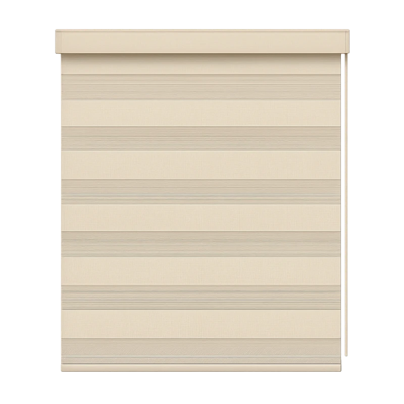 CREAM NIGHT – The ZB-112 Zebra Roller Blind was developed to enhance nighttime comfort in brightly lit environments. The warmth of its cream tones creates a peaceful atmosphere, while the dark weave ensures maximum privacy at night. Its UV-protective structure also provides superior performance against the harmful effects of the sun. It's an excellent choice for bedrooms and television rooms.